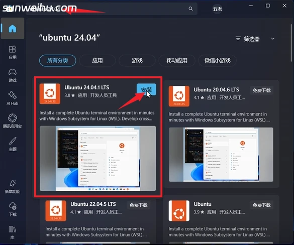 打开 Windows 自带的应用商店microsoft store搜索 Ubuntu24.04 ,在应用商店下载完成后,也可以直接现在离线安装包:https://www.123865.com/s/XJeA-pzXZ3